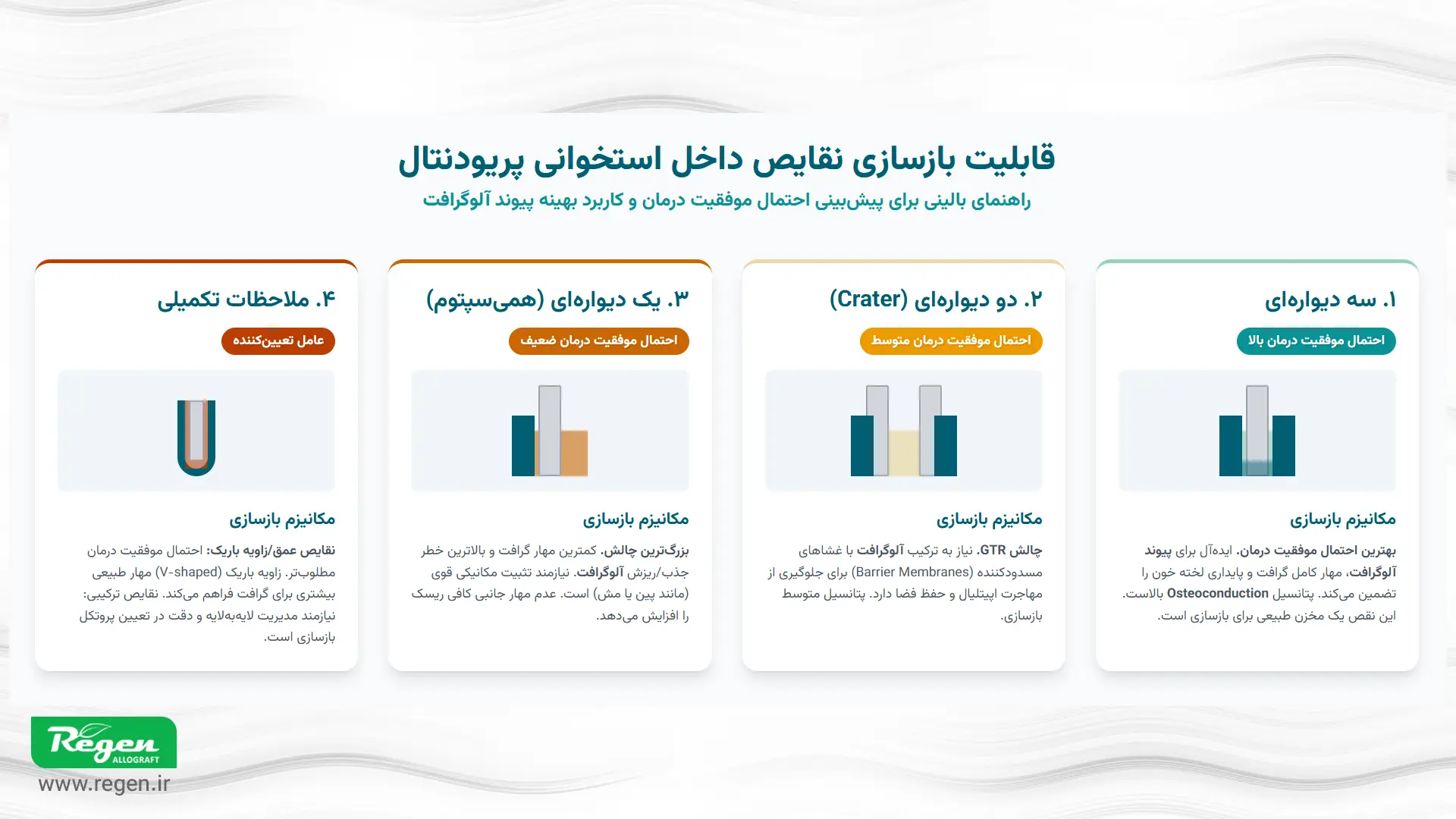 اینفوگرافیک راهنمای بالینی بازسازی نقایص استخوانی پریودنتال و کاربرد پیوند آلوگرافت