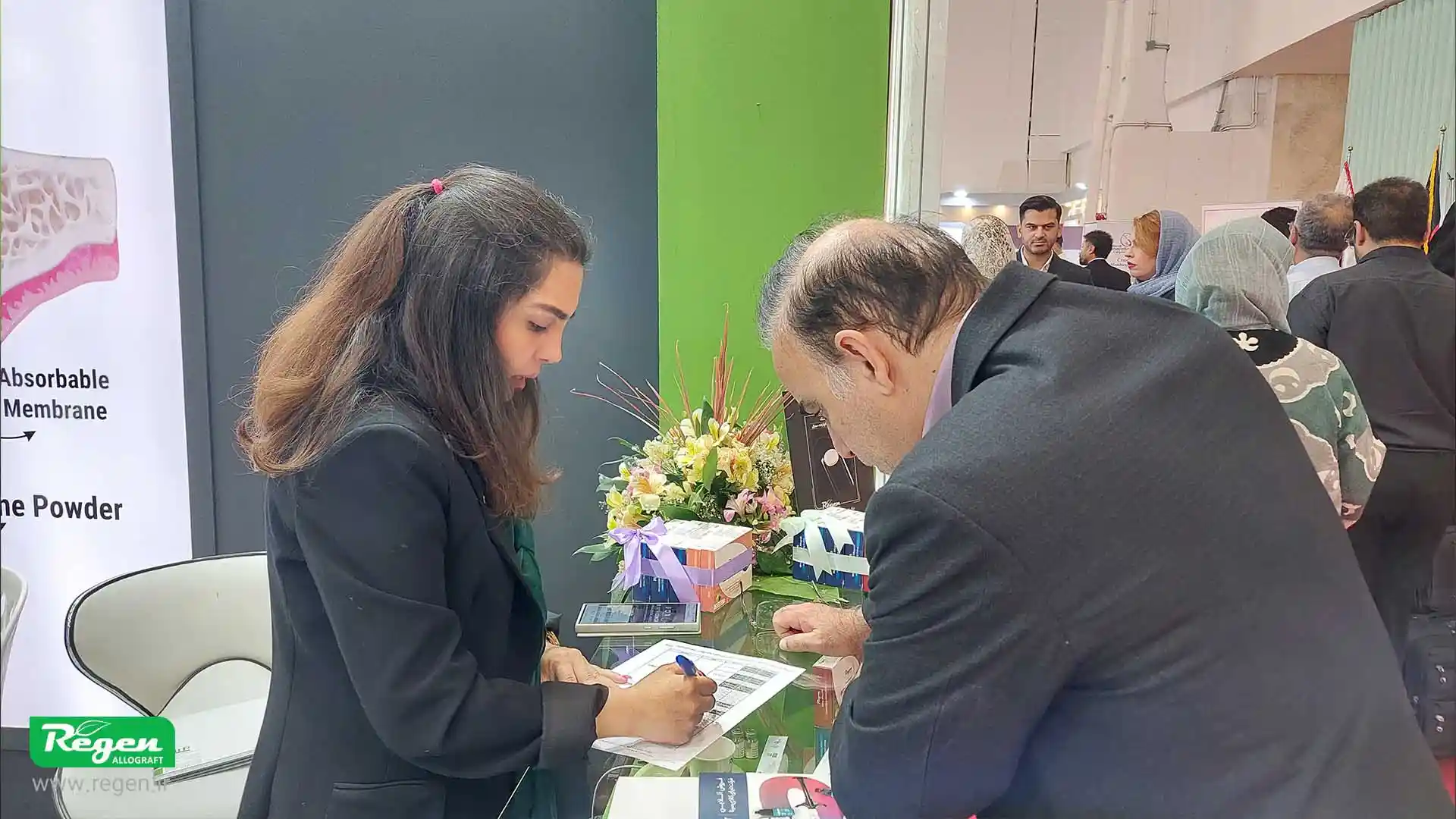 Iranian Tissue Product Company as Regen Allograft, through its participation in the 64th Congress of the Iranian Dental Association, not only showcased its new products but also created an opportunity to exchange knowledge and experiences with other dental professionals and researchers. Visitors to the company’s booth had the chance to learn about the products and benefit from specialized consultations with Dr. Amirhossein Tavakoli and Dr. Bahraminasab. These interactions significantly contribute to strengthening scientific and commercial collaborations in Iran’s dental industry. The company’s booth served as a hub for discussions and exchanges about the future of tissue and collagen technologies in dentistry throughout the congress.