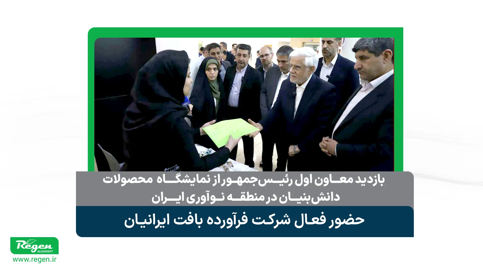 در روز یکشنبه ۲ اردیبهشت ۱۴۰۴، دکتر محمدرضا عارف، معاون اول رئیس‌جمهور، در جریان بازدید از منطقه بین‌المللی نوآوری ایران، از غرفه شرکت فرآورده بافت ایرانیان نیز بازدید به عمل آورد. در این بازدید که با حضور معاون علمی، فناوری و اقتصاد دانش‌بنیان ریاست‌جمهوری و استاندار تهران همراه بود، آخرین دستاوردهای این شرکت دانش‌بنیان در حوزه تولید بافت‌های انسانی فرآوری شده و محصولات ریجن آلوگرفت Regen Allograft معرفی شد.
